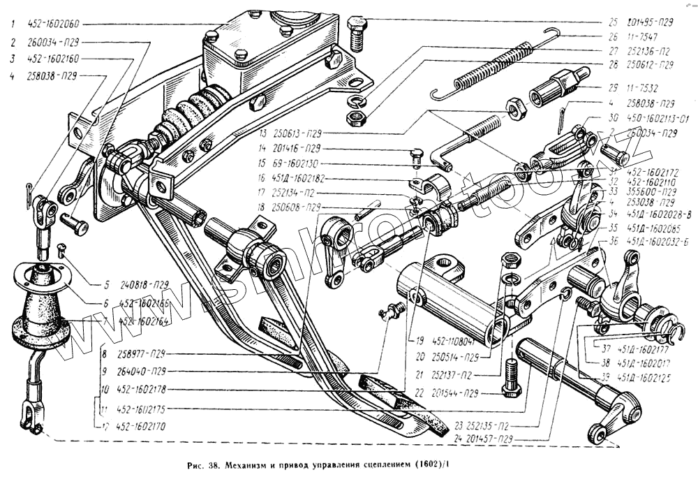Каталог запасных частей к технике: УАЗ-3962. Механизм и привод управления сцеплением