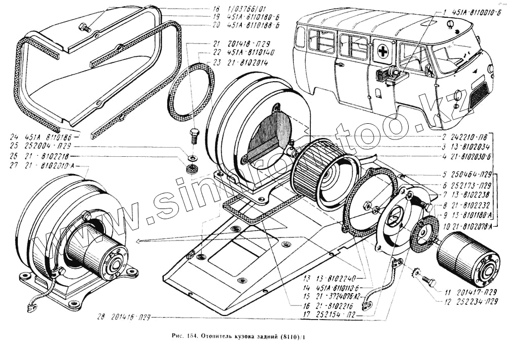 Каталог запасных частей к технике: УАЗ-3962. Отопитель кузова задний
