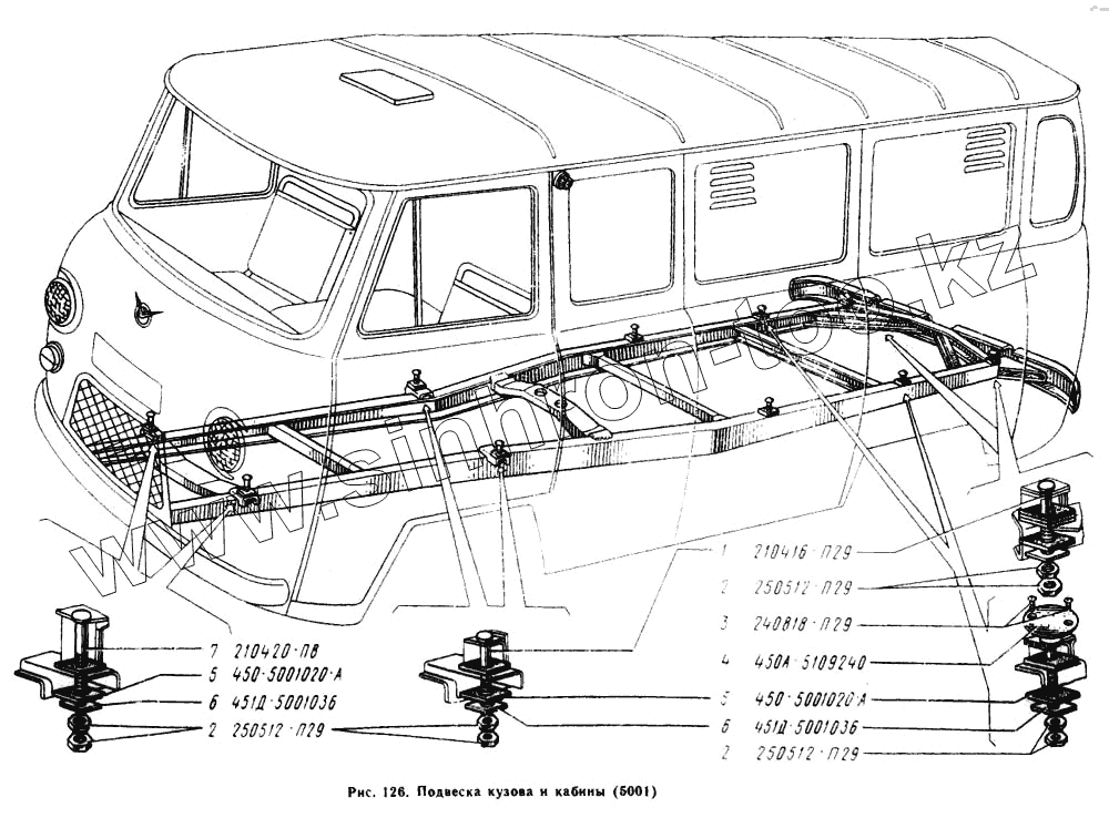 Каталог запасных частей к технике: УАЗ-3962. Подвеска кузова и кабины