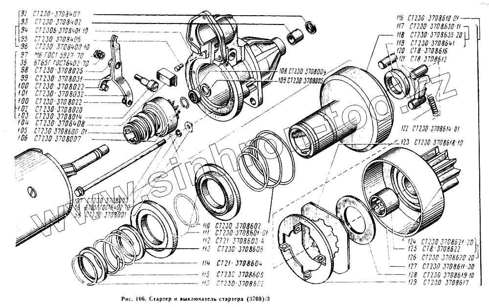 Каталог запасных частей к технике: УАЗ-3962. Стартер и выключатель стартера