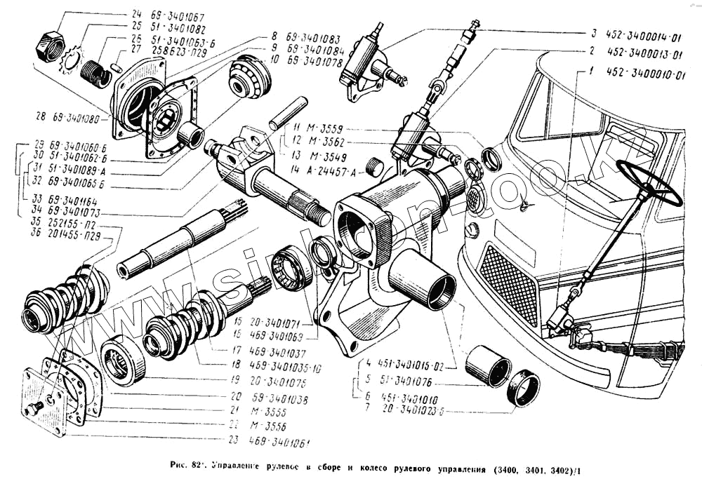 Каталог запасных частей к технике: УАЗ-3962. Управление рулевое в сборе