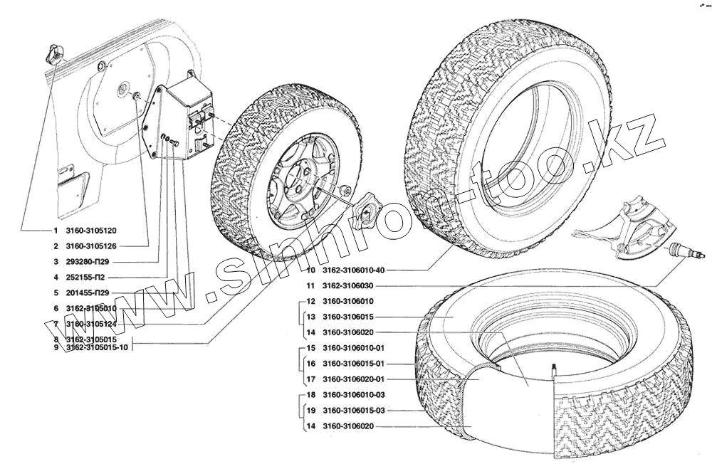 Каталог запасных частей к технике: УАЗ Patriot. Держатель запасного колеса, покрышки и камеры