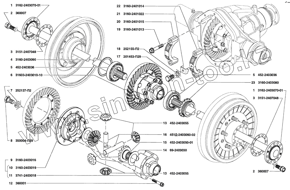 Каталог запасных частей к технике: УАЗ Patriot. Дифференциал и полуоси заднего моста