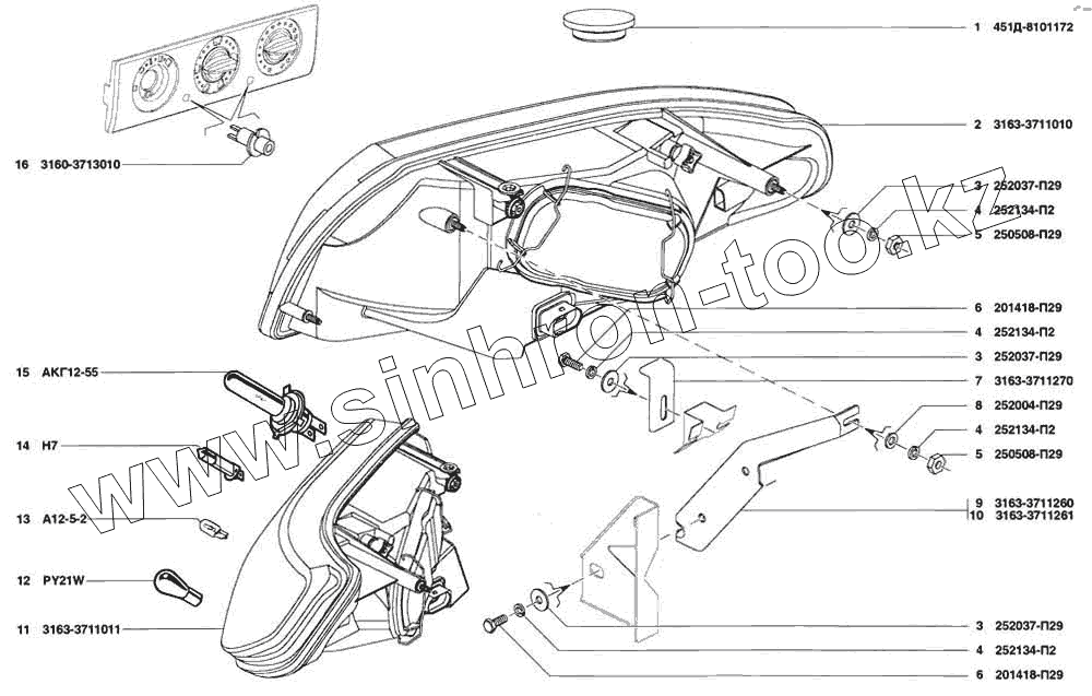 Каталог запасных частей к технике: УАЗ Patriot. Фары, патроны ламп