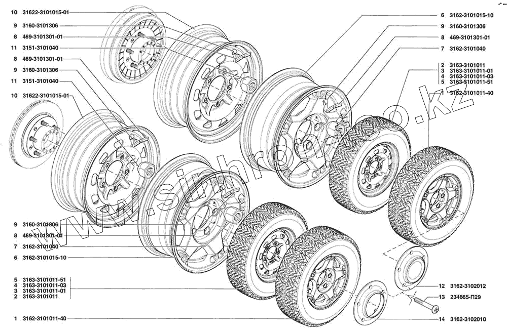 Каталог запасных частей к технике: УАЗ Patriot. Колеса