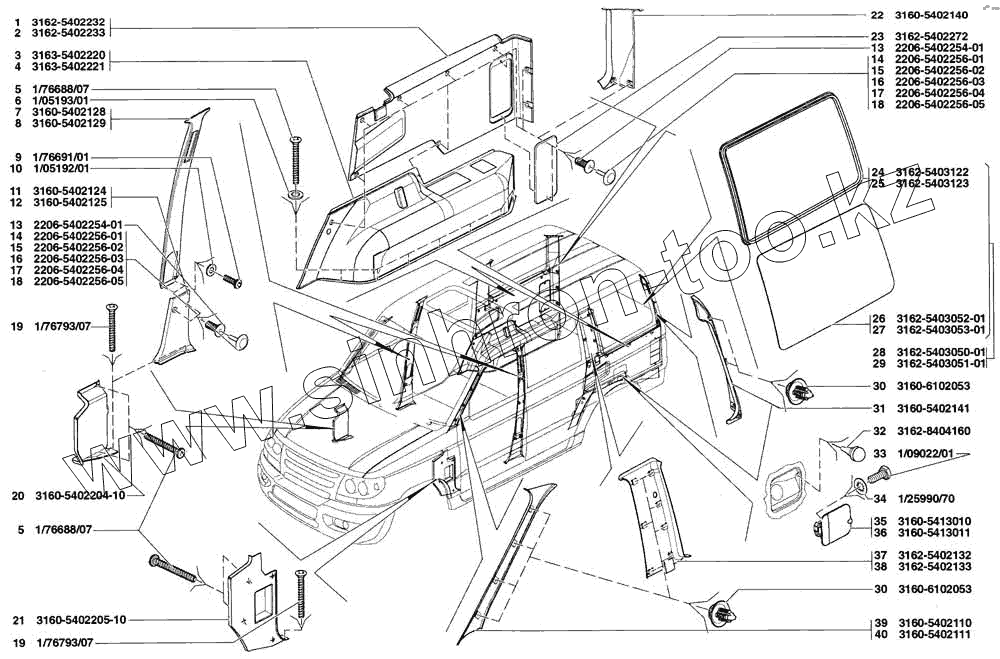 | 40 | 3160-5402111 | Обивка стойки ветрового окна левая |