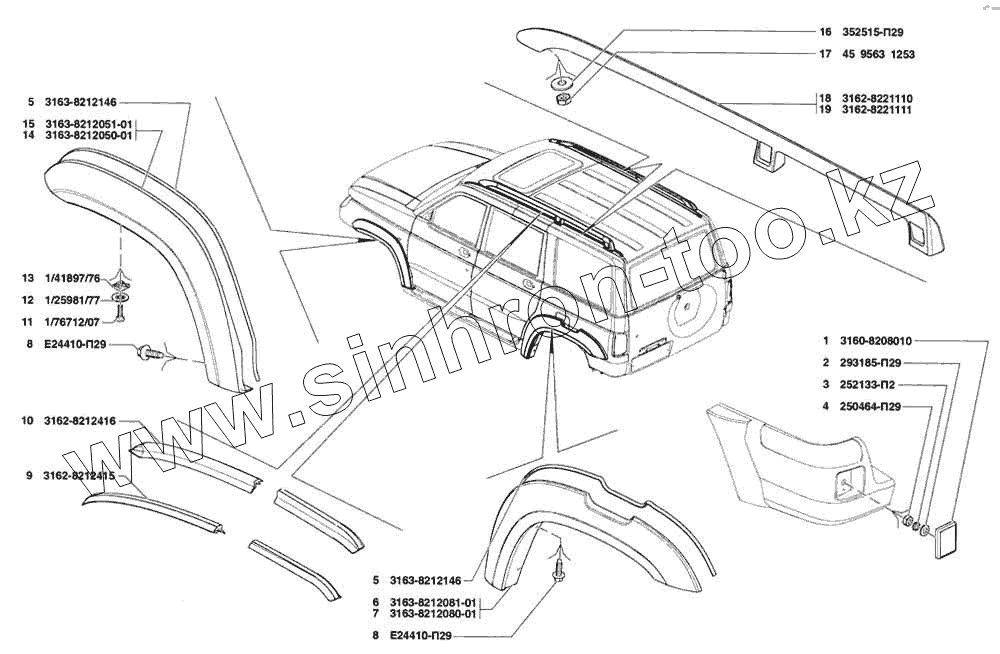 Каталог запасных частей к технике: УАЗ Patriot. Отражатели света, орнаменты