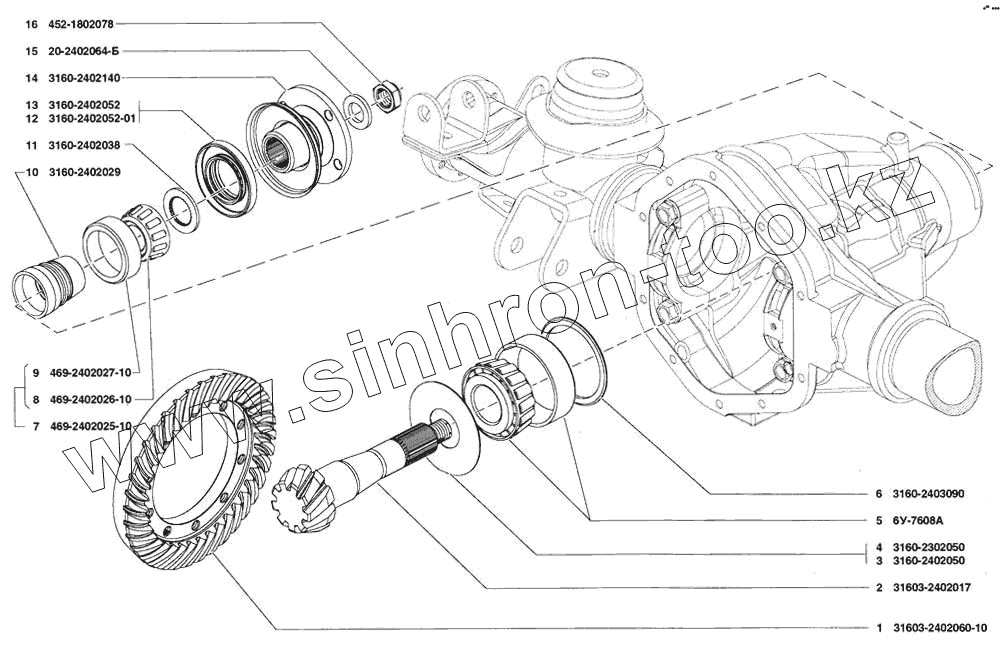Каталог запасных частей к технике: УАЗ Patriot. Передача главная переднего и заднего мостов