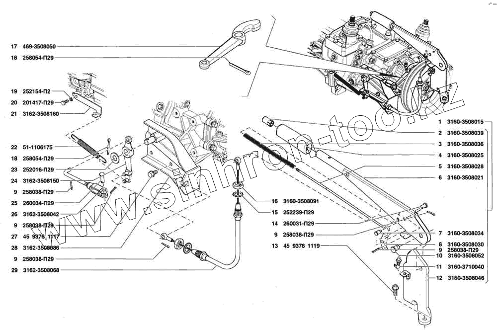 Каталог запасных частей к технике: УАЗ Patriot. Привод механизма управления стояночным тормозом