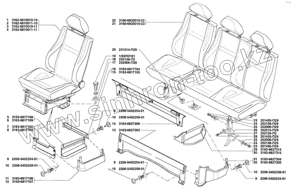 | 21 | 3160-6820010-23 | Сиденье заднее (трехместное) | |