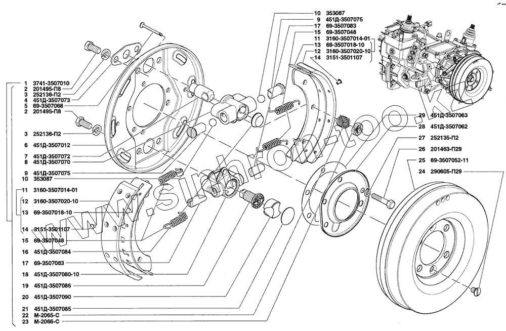 | 24 | 290605-П29 | Винт М8х12 крепления тормозного барабана к ступице | |
