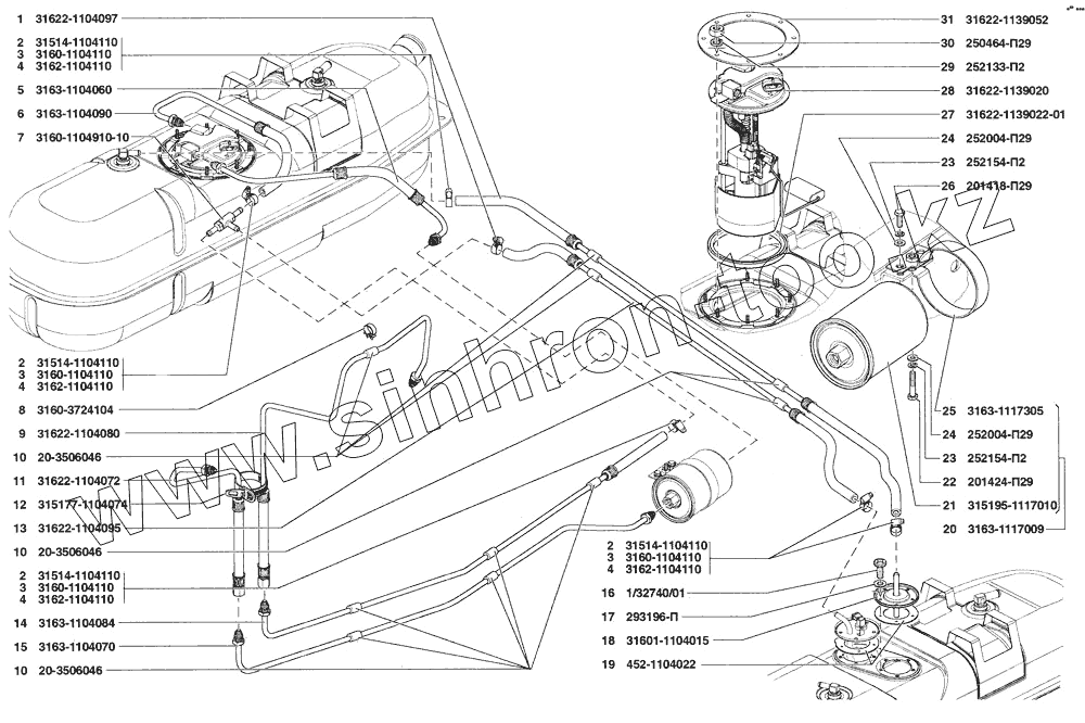 | 18 | 31601-1104015 | Трубка приемная топливного бака с фланцем в сборе | |