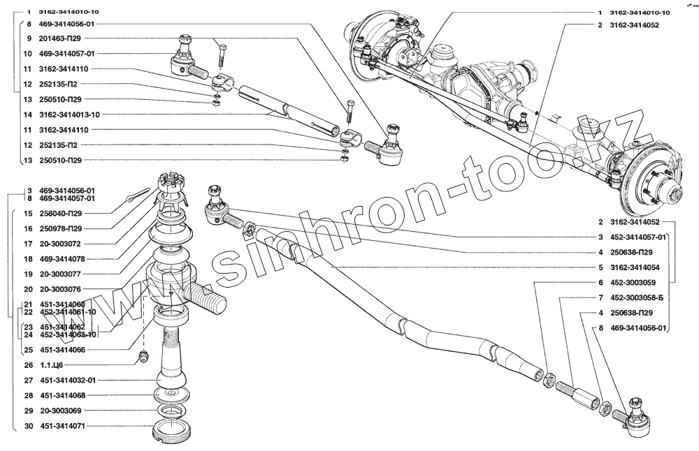 Каталог запасных частей к технике: УАЗ Patriot. Тяги рулевые