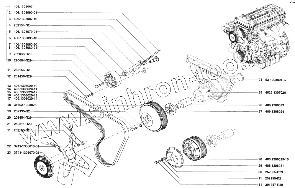 Каталог запасных частей к технике: УАЗ Patriot. Вентилятор и его привод