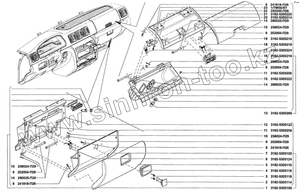 Каталог запасных частей к технике: УАЗ Patriot. Ящик вещевой