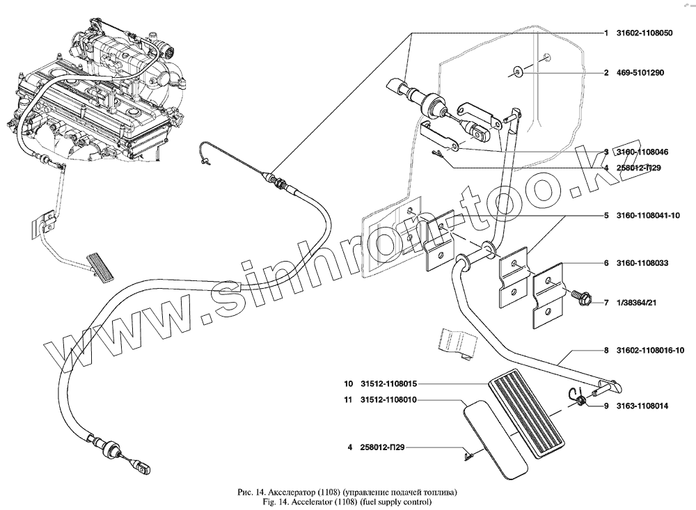 Каталог запасных частей к технике: УАЗ UAZ Patriot. Акселератор управление подачей топлива