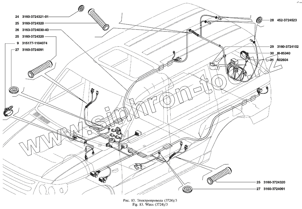 Каталог запасных частей к технике: УАЗ UAZ Patriot. Электропровода