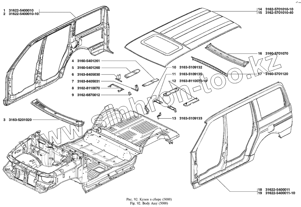 Каталог запасных частей к технике: УАЗ UAZ Patriot. Кузов в сборе
