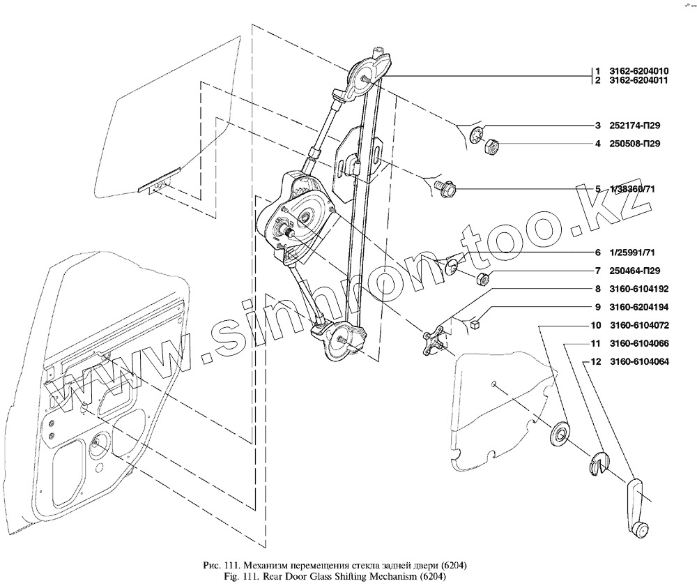 Каталог запасных частей к технике: УАЗ UAZ Patriot. Механизм перемещения стекла задней двери