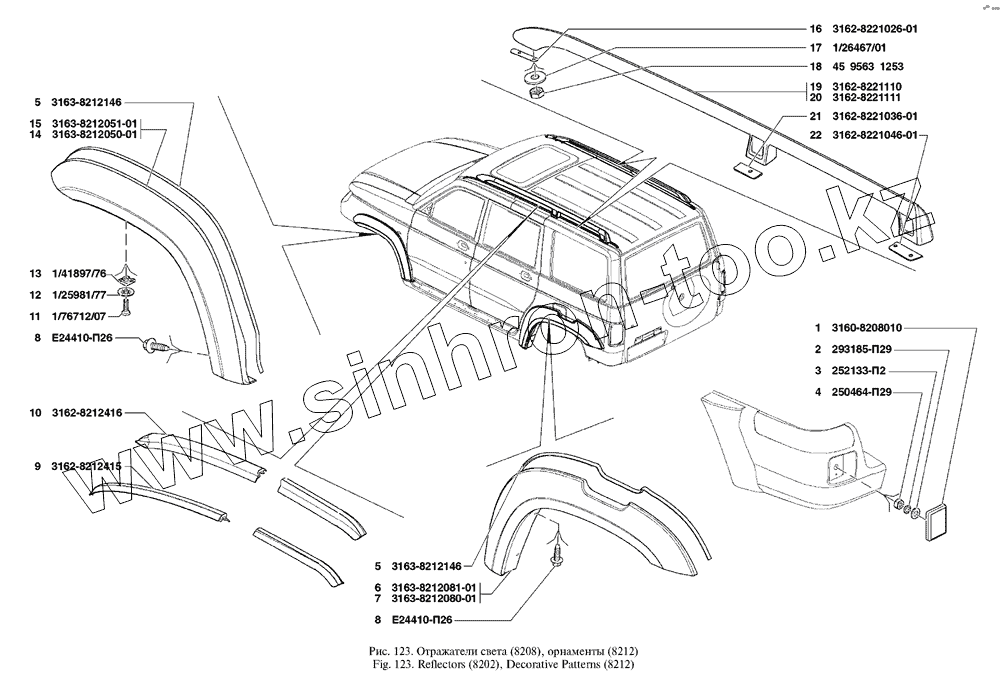 Каталог запасных частей к технике: УАЗ UAZ Patriot. Отражатели света, орнаменты