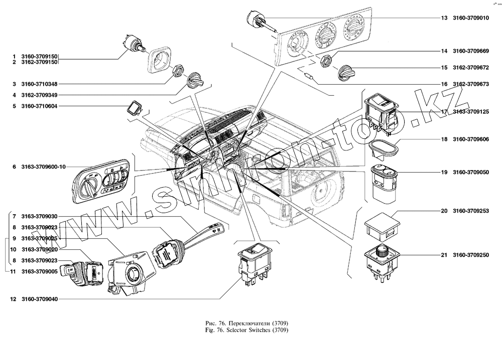 Каталог запасных частей к технике: УАЗ UAZ Patriot. Переключатели
