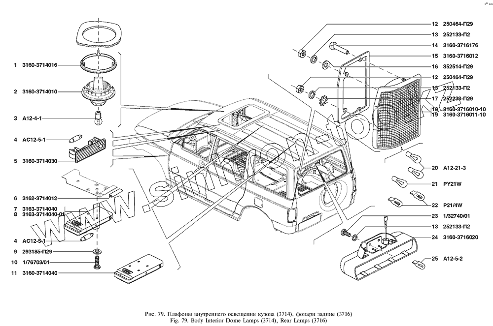 Каталог запасных частей к технике: УАЗ UAZ Patriot. Плафоны внутреннего освещения кузова, фонари задние