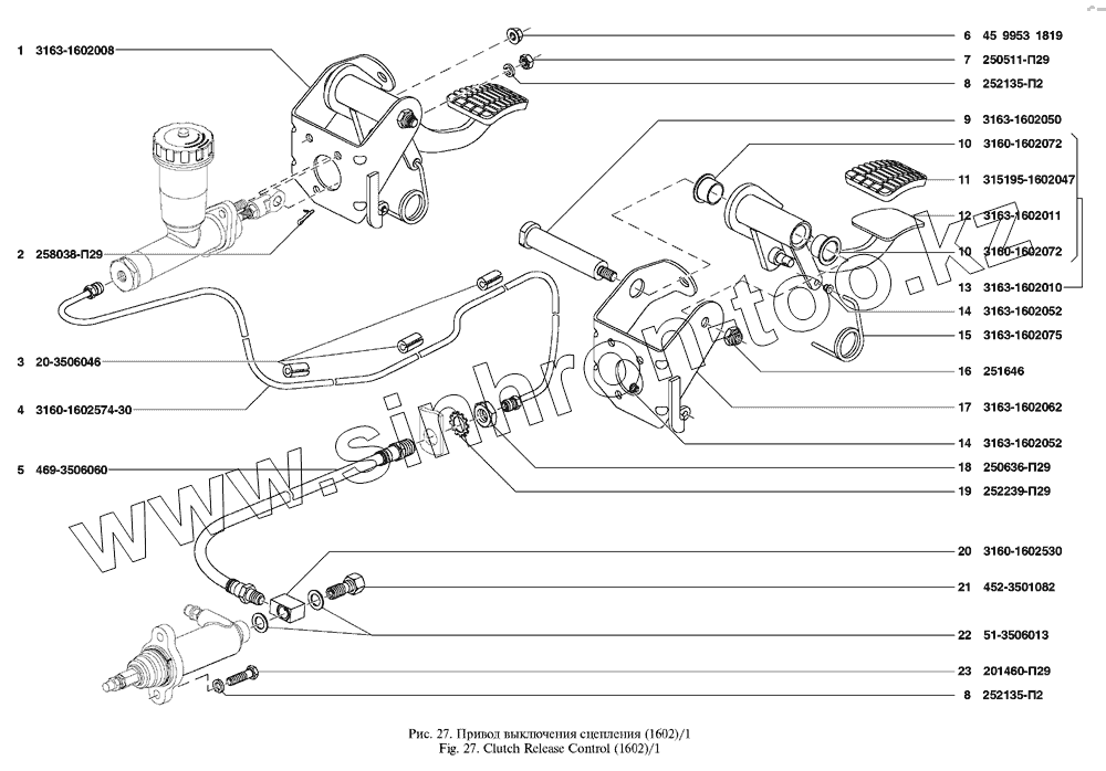 Каталог запасных частей к технике: УАЗ UAZ Patriot. Привод выключения сцепления