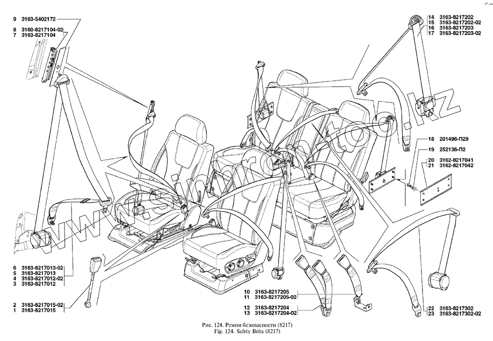 Каталог запасных частей к технике: УАЗ UAZ Patriot. Ремни безопасности