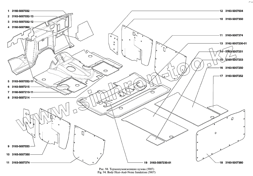 Каталог запасных частей к технике: УАЗ UAZ Patriot. Термошумоизоляция кузова
