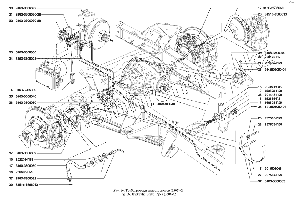 Каталог запасных частей к технике: УАЗ UAZ Patriot. Трубопроводы гидротормозов