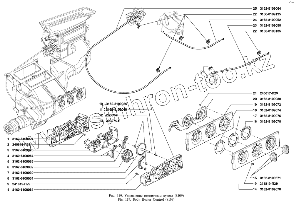 Каталог запасных частей к технике: УАЗ UAZ Patriot. Управление отопителем кузова
