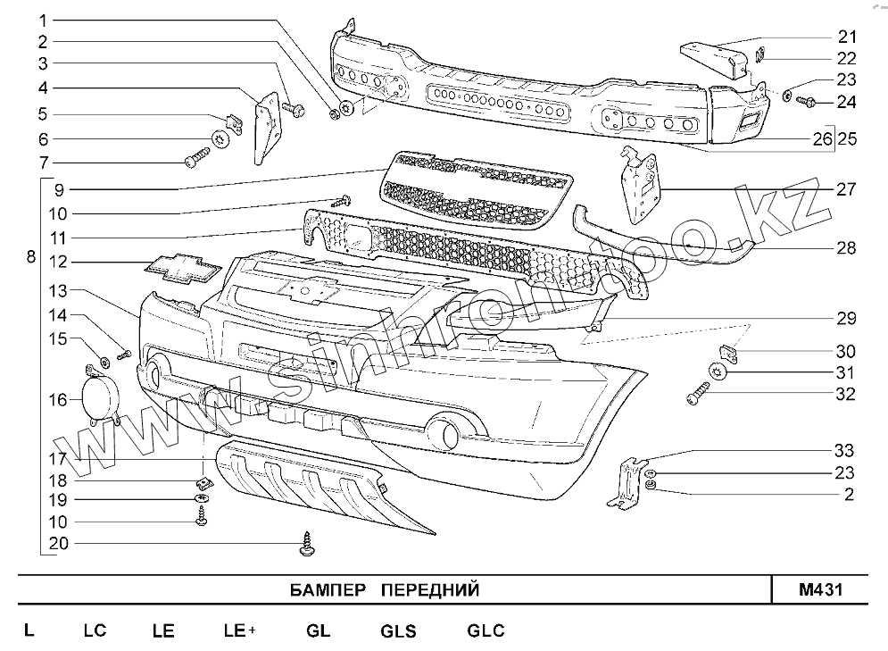 Каталог запасных частей к технике: ВАЗ Chevrolet Niva 1,7. Бампер передний