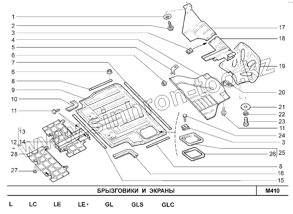 Каталог запасных частей к технике: ВАЗ Chevrolet Niva 1,7. Брызговики и экраны