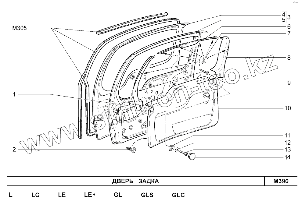 Каталог запасных частей к технике: ВАЗ Chevrolet Niva 1,7. Дверь задка