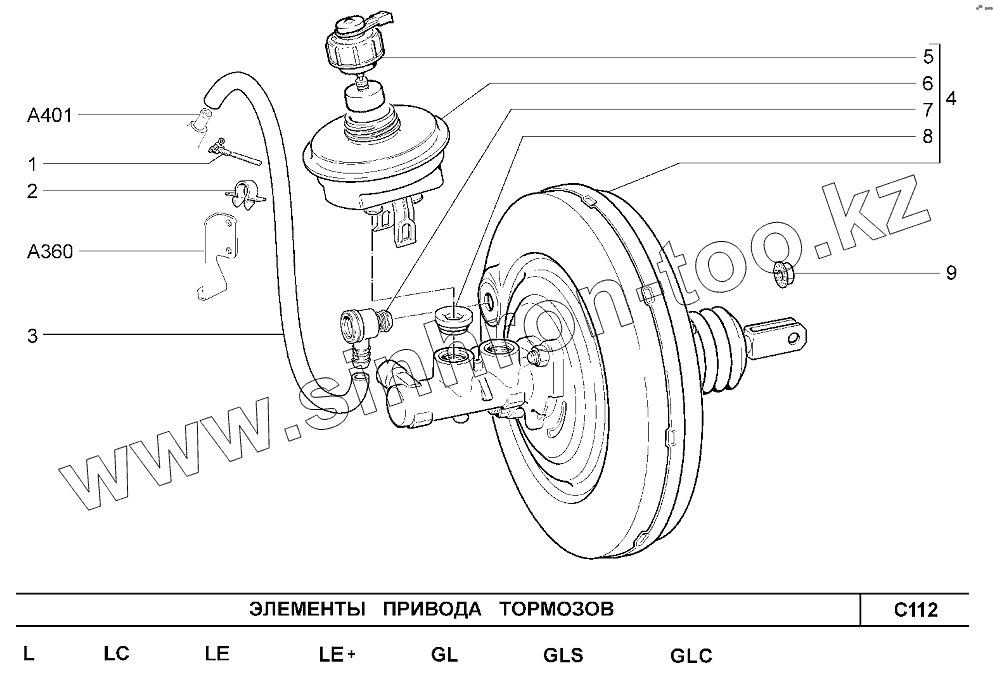 Элементы привода тормозов