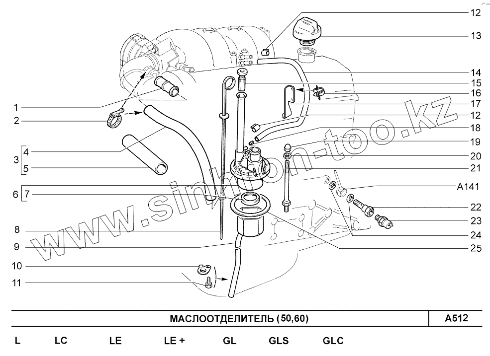 Каталог запасных частей к технике: ВАЗ Chevrolet Niva 1,7. Маслоотделитель (50,60)