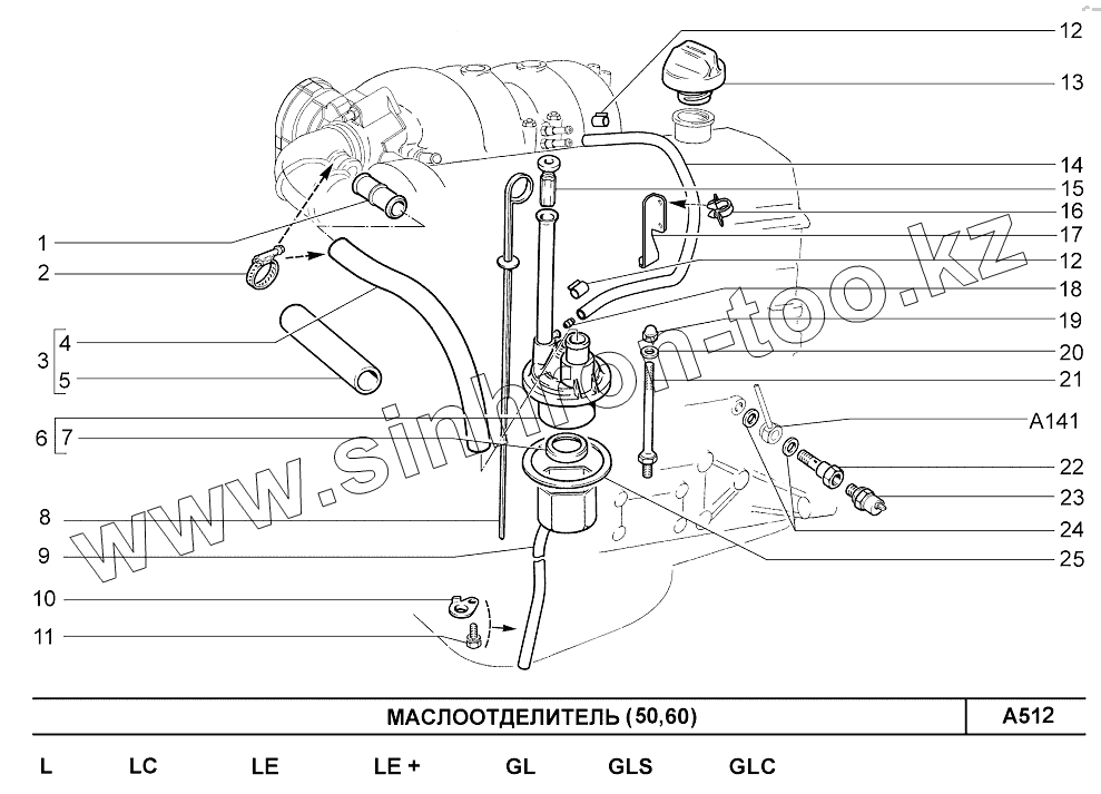 Каталог запасных частей к технике: ВАЗ Chevrolet Niva 1,7. Маслоотделитель (50,60)