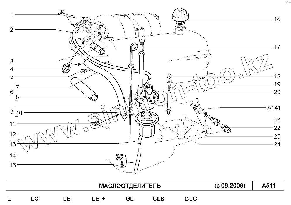 Каталог запасных частей к технике: ВАЗ Chevrolet Niva 1,7. Маслоотделитель (с 08.2008)