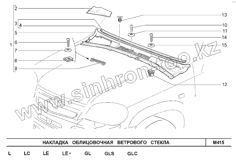 Каталог запасных частей к технике: ВАЗ Chevrolet Niva 1,7. Накладка облицовочная ветрового стекла