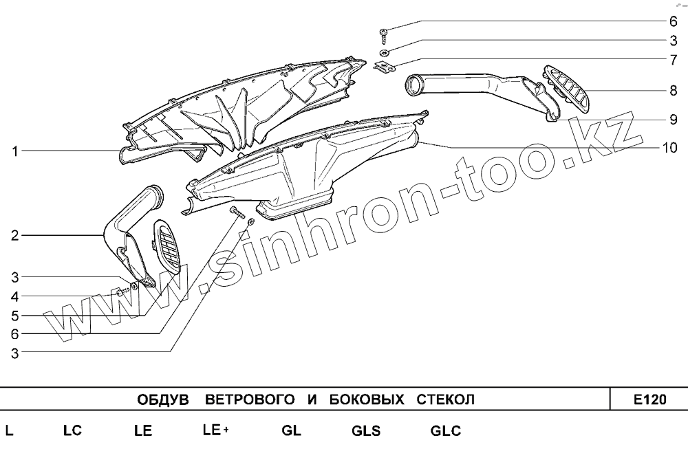 Каталог запасных частей к технике: ВАЗ Chevrolet Niva 1,7. Обдув ветрового и боковых стекол