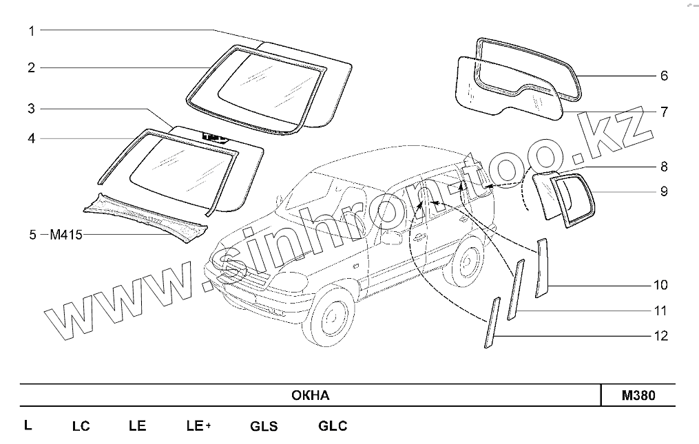 Каталог запасных частей к технике: ВАЗ Chevrolet Niva 1,7. Окна (до 02.2016г.)