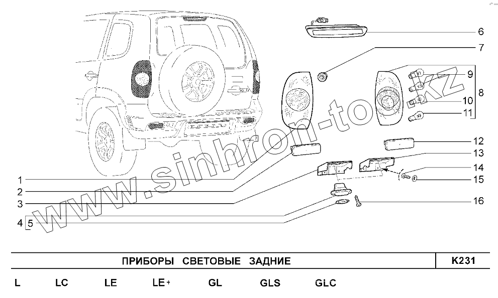 Каталог запасных частей к технике: ВАЗ Chevrolet Niva 1,7. Приборы световые задние