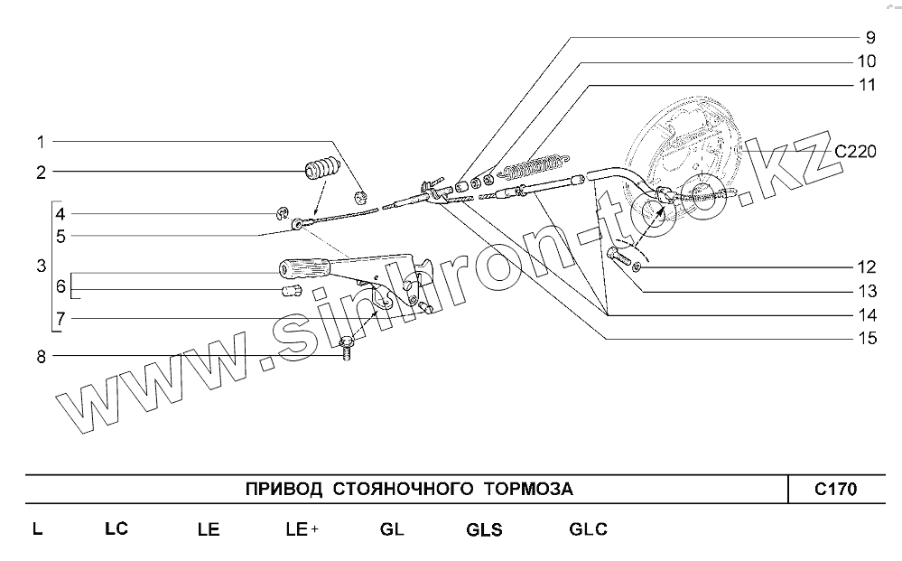 Каталог запасных частей к технике: ВАЗ Chevrolet Niva 1,7. Привод стояночного тормоза