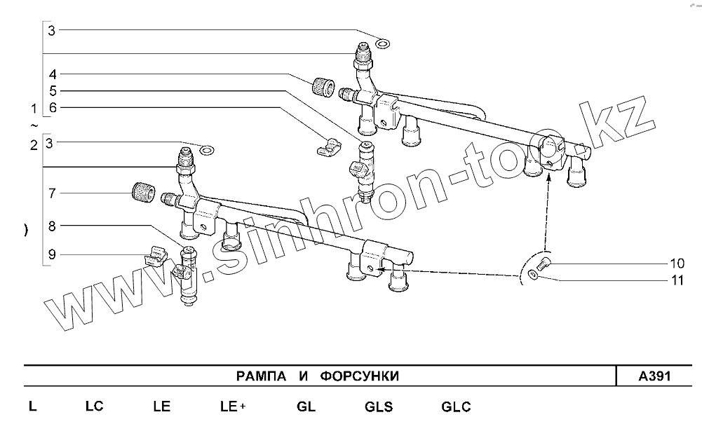 Каталог запасных частей к технике: ВАЗ Chevrolet Niva 1,7. Рампа и форсунки