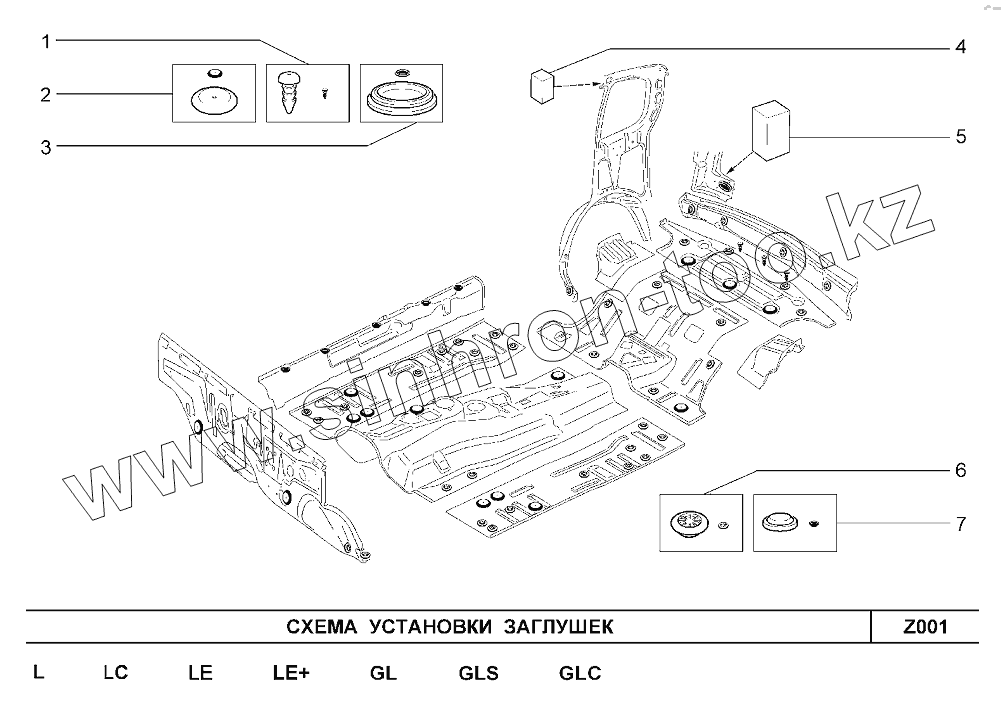 Каталог запасных частей к технике: ВАЗ Chevrolet Niva 1,7. Схема установки заглушек