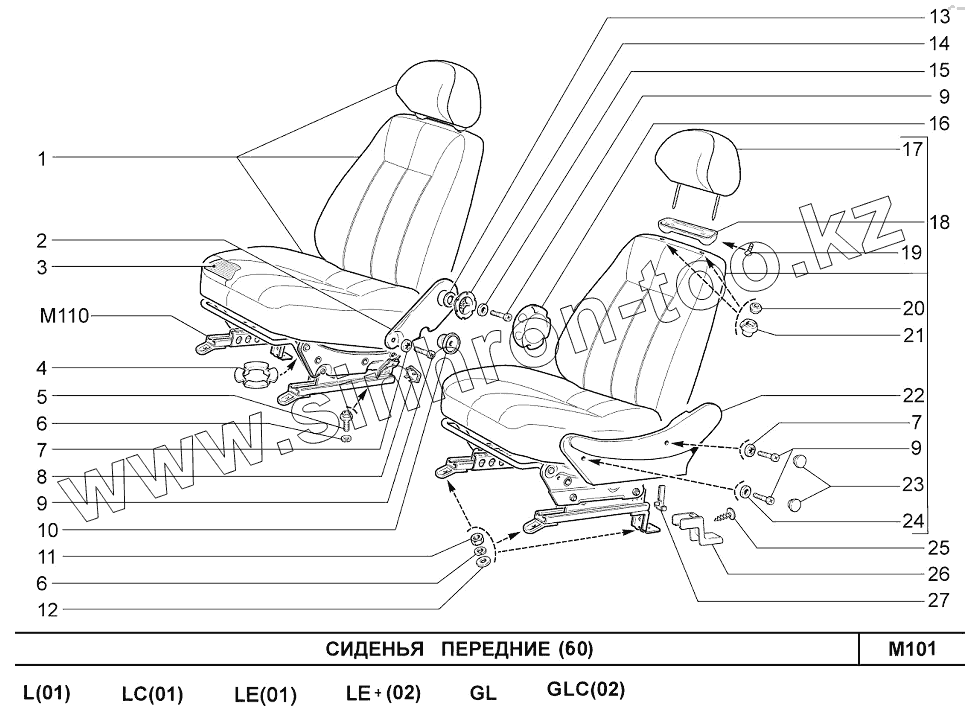 Каталог запасных частей к технике: ВАЗ Chevrolet Niva 1,7. Сиденья передние (60)