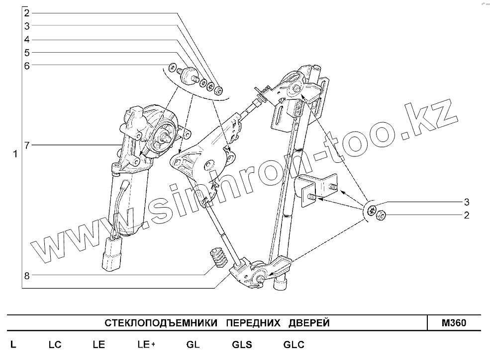 Каталог запасных частей к технике: ВАЗ Chevrolet Niva 1,7. Стеклоподъемники передних дверей