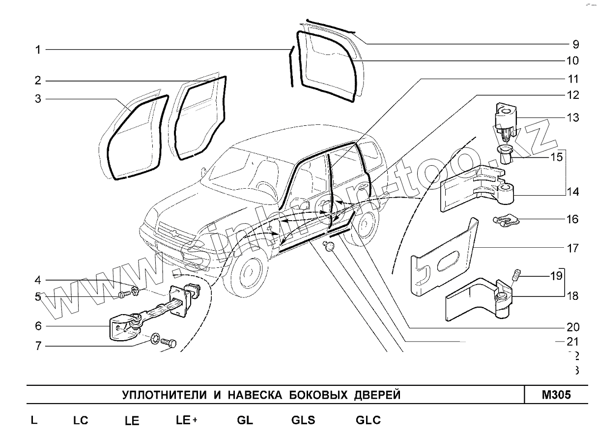 Каталог запасных частей к технике: ВАЗ Chevrolet Niva 1,7. Уплотнители и навеска боковых дверей