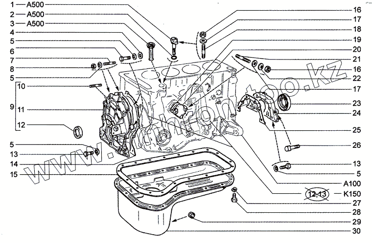 Картер масляный и крышки блока