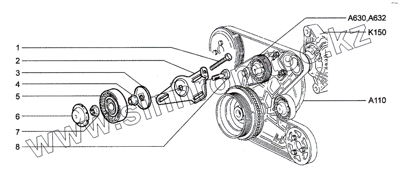 Каталог запасных частей к технике: ВАЗ Chevrolet Niva 1.7. Механизм натяжения ремня